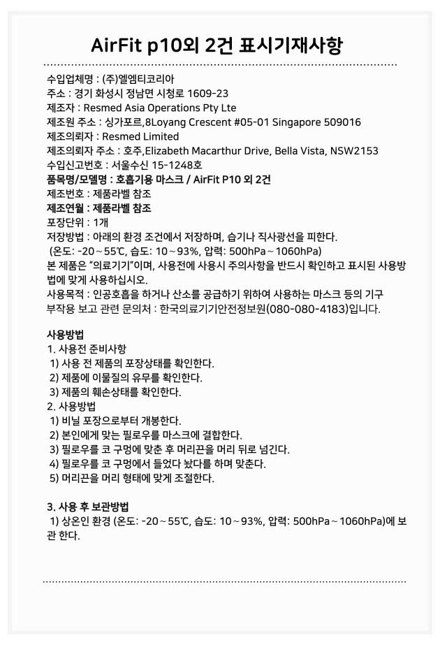 AirFit p10외 2건 표시기재사항