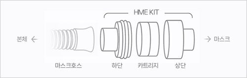 참고: HME 교체용 필터 아답터를 청소하기 전에 HME 카트리지를 제거해야 합니다. HME 카트리지는 청소할 수 없습니다. 3~7일 사용 후 폐기하세요.