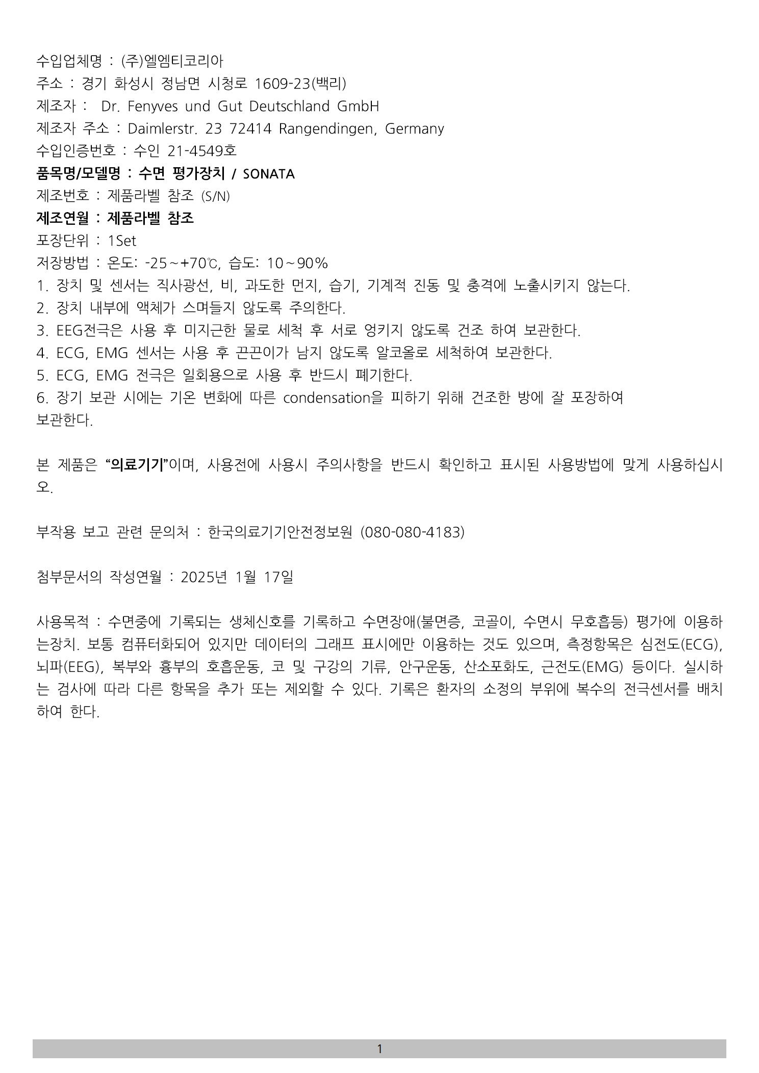 SONATA 사용자설명서 (수면 평가장치, 수인 21-4549호)