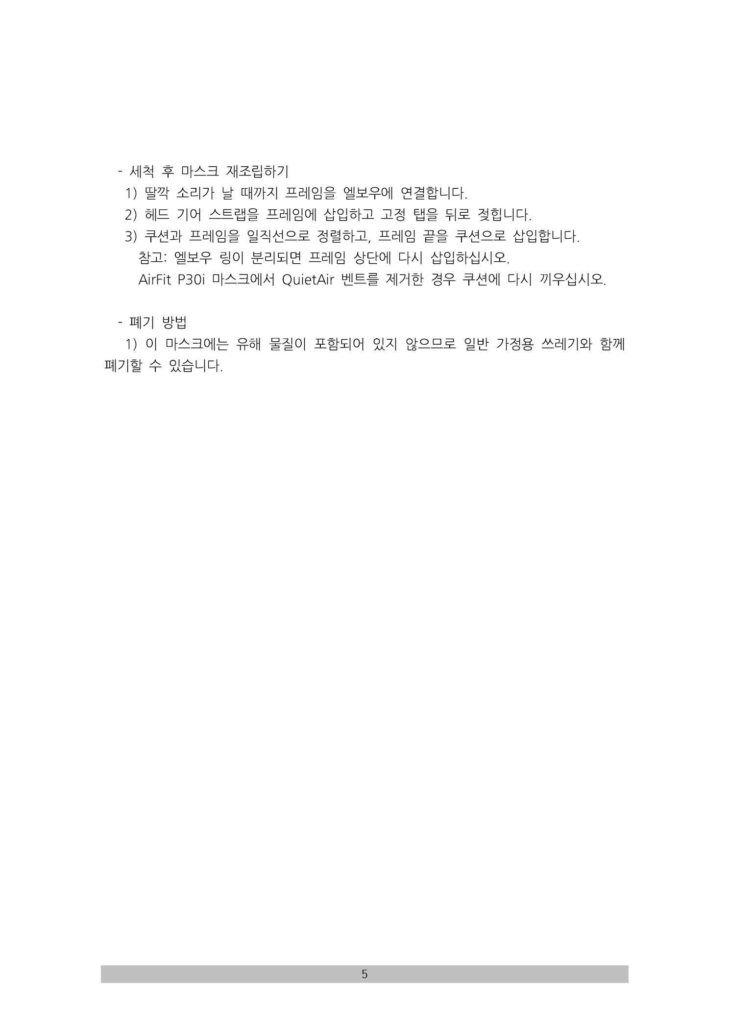 AirFit 20 시리즈 사용자설명서 (호흡기용 마...