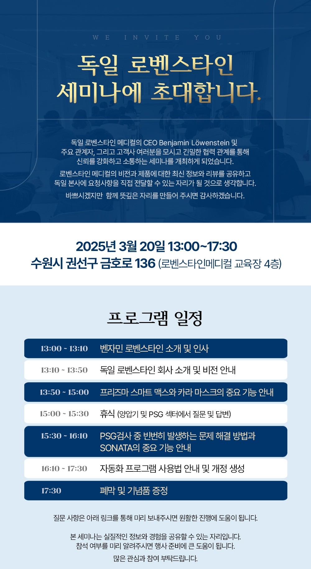 장소 : 수원시 권선구 금호로 136 로벤스타인메디컬 4층 교육장